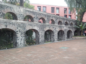 | El acueducto, junto al cual hay otra casa que sirve como escenario de algunas de las obras pictóricas más importantes de la Colonia |